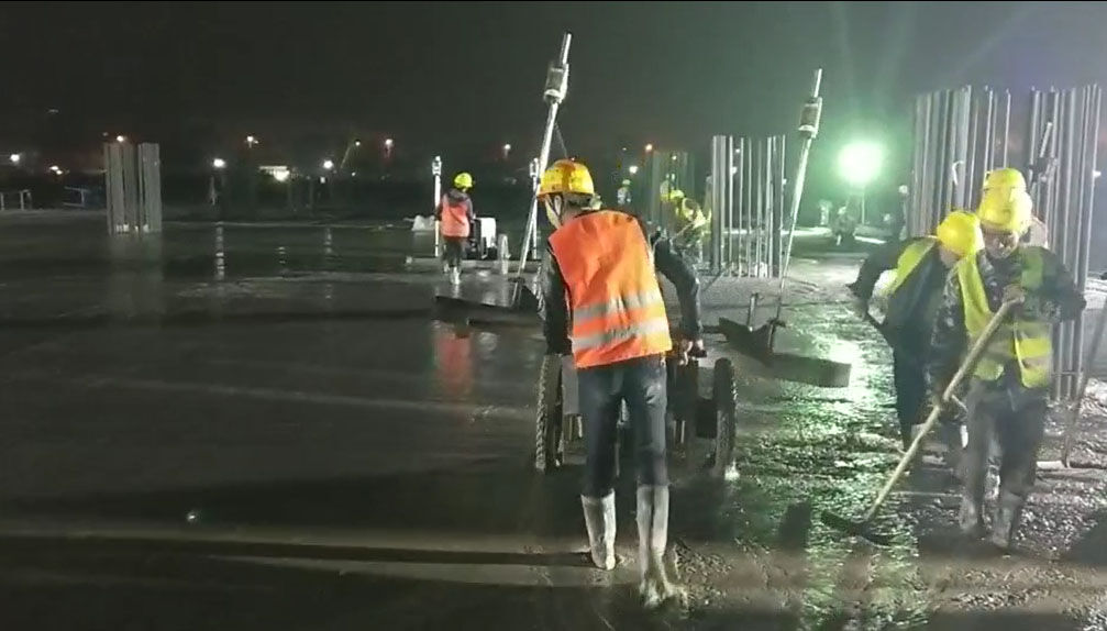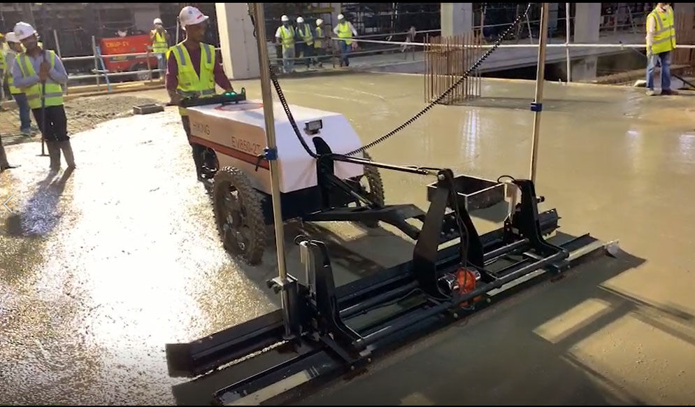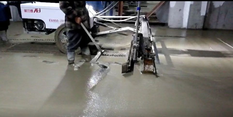 混凝土激光攤鋪機(jī)是用刮板將高出的混凝土帶走并初步刮平,達(dá)到設(shè)計(jì)要求的標(biāo)高。液壓驅(qū)動(dòng)振動(dòng)馬達(dá)產(chǎn)生震動(dòng),頻率為4000次/分鐘,帶動(dòng)整個(gè)振動(dòng)板一起對(duì)混凝土產(chǎn)生振搗。激光攤鋪機(jī)找平不需要拉控制線,也不需要支側(cè)模板來控制地面標(biāo)高,而由攤鋪機(jī)上的激光測控系統(tǒng)實(shí)時(shí)控制,只要激光發(fā)射器不受干擾,無論攤鋪機(jī)移動(dòng)到哪里,都能確保鋪筑后的地面整體上的標(biāo)高不受影響。