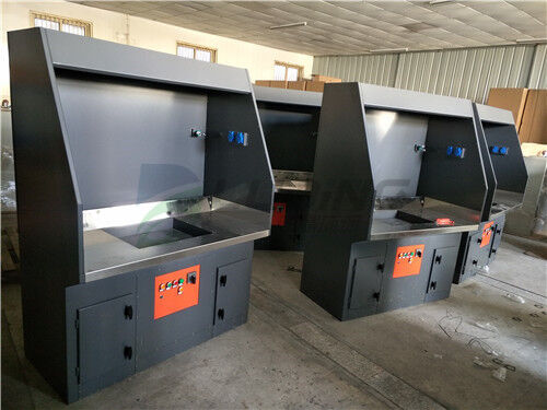 2、該打磨除塵工作臺(tái)采用我公司自己的收吸式除塵方式,且在后部抽風(fēng)口和臺(tái)面抽風(fēng)口都安裝有風(fēng)閥??梢愿鶕?jù)工件的大小或打磨位置的不同關(guān)閉相應(yīng)的風(fēng)閥.以提高其它部位的風(fēng)量來(lái)達(dá)到提高除塵效果。該種方式很大地節(jié)省了用風(fēng)量.降低了運(yùn)行費(fèi)用。
