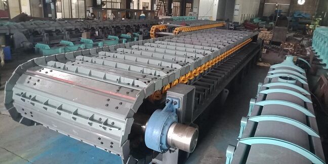間隙均勻無漏料,鏈條松弛適當,無跑偏,槽板安裝整齊,運行平穩(wěn)。