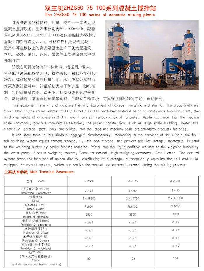 歸屬行業(yè):雙主機(jī)2HZS50混凝土攪拌站