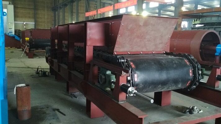 我公司研制的新型板式喂料機,結(jié)合皮帶輸送機和板式喂料機的優(yōu)點,能輸送含水率高的粘性物料,獨特的新型刮料裝置,能把粘在高強皮帶上的料自動清理下來,清理下來的物料掉到下道工序上。