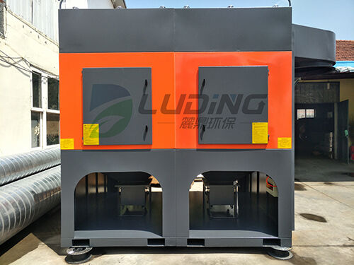 濾筒除塵器由進(jìn)風(fēng)管、排風(fēng)管、箱體、灰斗、清灰裝置、濾筒及電控裝置組成。