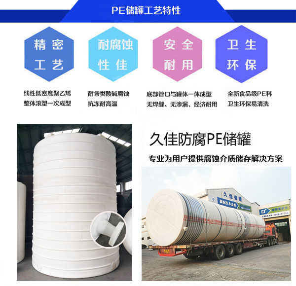 含油廢水浸入土壤孔隙間形成油膜,產(chǎn)生堵塞作用,致使空氣、水分及肥料均不能滲入土中,破壞土層結(jié)構(gòu),不利于農(nóng)作物的生長,甚至使農(nóng)作物枯死,由于其特殊化學性質(zhì),推薦使用久佳防腐牌PE含油廢水儲罐。久佳防腐的PE儲罐能很好儲存含油廢水,自主研發(fā)管口一體成型專利,創(chuàng)新管口一體成型旋轉(zhuǎn)滾塑工藝,具有防滲漏、防污染、耐各種酸堿、防腐蝕、壽命長等優(yōu)點。提高了罐體和下部管口之間的機械性能和承壓強度,優(yōu)化了產(chǎn)品結(jié)構(gòu)。