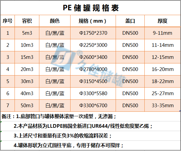 30立方含油廢水PE滾塑罐 佛山塑料儲罐 管口一體成型產(chǎn)品參數(shù):