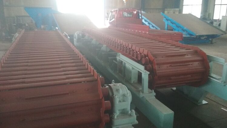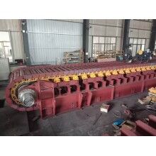 負(fù)荷鏈板材料選用優(yōu)質(zhì)合金鋼板沖壓而成。給料板式給料機(jī)每塊負(fù)荷鏈板上焊有折彎角鐵,既能滿足大傾角向上運(yùn)送物料,又提高負(fù)荷鏈板的強(qiáng)度。在鏈板寬度較寬的情況下增加輔助支撐,該項結(jié)構(gòu)不但增加了鏈板的強(qiáng)度,而且使運(yùn)輸過程更加平穩(wěn)可靠。拉料板式給料機(jī)為了增加鏈板表面的摩擦,防止物料打滑,在負(fù)荷鏈板上增加了一定數(shù)量的耙齒,對防止搭橋有一定的緩沖作用,保證了給料的均勻性。