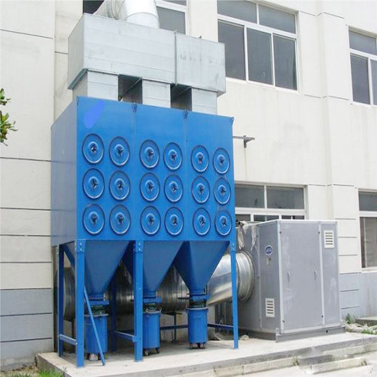 在正常運行時,如:重力、慣性力、碰撞、靜電吸附,篩濾作用等。含塵空氣由頂部入口進(jìn)入濾筒式除塵器,較大的粉塵顆粒因截面積增大,風(fēng)速下降而提高直接沉降,較小的煙塵粉塵顆粒通過濾筒。粉塵被捕集在過濾筒外邊,清潔空氣則經(jīng)由濾筒中心進(jìn)入清潔空氣室,再經(jīng)出口由引風(fēng)機(jī)排出。隨著過濾不斷進(jìn)行,濾筒表面的煙塵粉塵越積越多,阻力不斷升高,及至濾筒清灰時,固態(tài)控制將操縱電磁閥以打開一個空氣隔膜閥,于是高壓空氣便直接沖入所選濾筒中心,把捕集在濾件表面上的粉塵吹掃一清,使濾筒再生。粉塵則隨主氣流所趨,并在重力的作用下向下落入塵斗中。周而復(fù)始,連續(xù)過濾,使設(shè)備連續(xù)進(jìn)行得到保障。