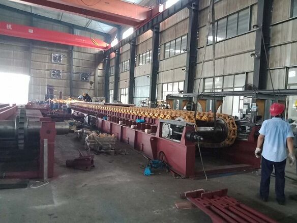 (6)新做輥式喂料機的支撐平臺,4個支腿中2個落地2個落在破碎機外殼板上。