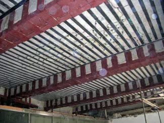 4.膠料配制:按稱量比例調(diào)制粘結(jié)膠,調(diào)制前對(duì)甲、乙兩組分別攪拌,混入后再充分?jǐn)嚢琛?br /> 5.粘貼碳纖維:按設(shè)計(jì)要求的尺寸裁剪碳纖維,將配制后的粘結(jié)膠均勻涂抹粘貼部位的混凝土表面上。將裁剪好的碳纖維敷設(shè)在涂好粘結(jié)膠的基礎(chǔ)上,并用滾筒沿碳纖維纖維方向多次滾壓使粘結(jié)膠充分浸透纖維中。