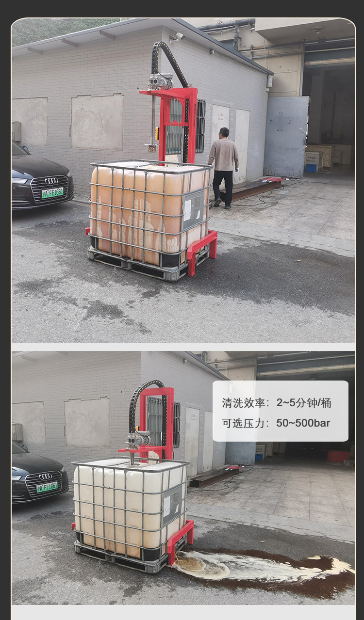 7、原料化工桶清洗設備可選配5-500公斤清洗壓力,解決各種工況的清洗問題