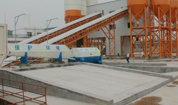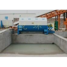 該系統(tǒng)主要由:攪拌車加水清洗裝置,溜槽輸送裝置,砂石漿水分離裝置,和泥漿水后處理裝置組成?;炷凛斔驮O(shè)備清洗后,將殘余混凝土排入溜槽中,在高壓水流沖擊下,經(jīng)溜槽進(jìn)入砂石分離機,在不斷旋轉(zhuǎn)的分離機作用下,對混凝土進(jìn)行充分的清洗,同時將砂、石進(jìn)行分離,分離后的砂、石在導(dǎo)料葉片的作用下背向流動,再通過提升式出料口排出分離機,分別堆放。清洗后的漿水從分離機的底部排出進(jìn)入沉淀池逐級沉淀后循環(huán)使用或進(jìn)入攪拌池回收利用。進(jìn)入攪拌池(一般情況2個攪拌池)的漿水為了防止沉淀凝固,需通過攪拌器的作用,攪拌器的工作為間歇式。分離出水泥漿在連續(xù)的攪拌器作用下,再通過高壓污水泵輸送到攪拌樓中待生產(chǎn)計量再利用。整個控制系統(tǒng)設(shè)有手動和自動控制,方便控制設(shè)置,整個系統(tǒng)運行可靠,故障率低,維護(hù)量少等特點。