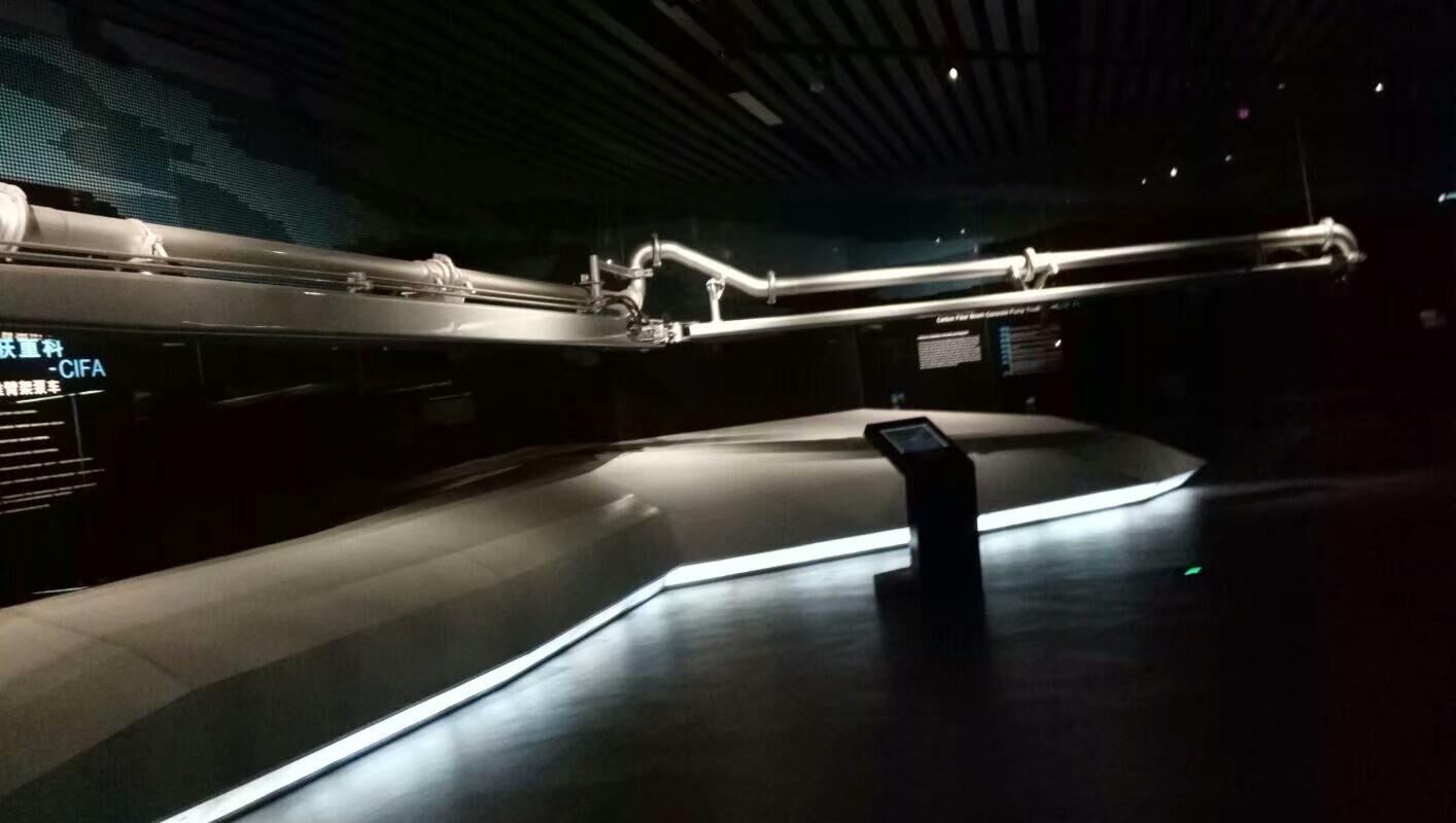 引導人員還特別向我們介紹了中聯(lián)的科技產(chǎn)品——碳釬維臂架,相比較鋼鐵材質(zhì)的臂架,同樣大小體積的臂架,碳纖維臂架只有傳統(tǒng)臂架五分之一的重量,完美的解決了臂架長度問題,這一產(chǎn)品的出世,展示了中聯(lián)在技術方面不斷的鉆研和追求。