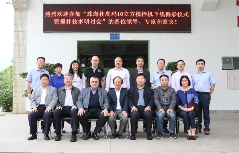 2018年4月18日,珠海仕高瑪公司10立方攪拌機下線揭彩儀式暨攪拌技術(shù)研討會在珠海仕高瑪公司舉行,中國工程機械協(xié)會混凝土機械分會符忠軒會長、長安大學馮忠緒教授、趙利軍博士、廣東長大公路工程公司楊東來總工程師、河南萬里路橋李冠峰總工程師、許昌德通特種混凝土公司孟超總經(jīng)理等領(lǐng)導、專家和嘉賓應邀出席儀式和研討會,珠海仕高瑪公司股東黃志輝先生、意大利SICOMA公司董事長Mr. Galletti、總工程師Marco、珠海仕高瑪公司總經(jīng)理郗俊峰先生、財務總監(jiān)唐志敏女士及公司技術(shù)研發(fā)團隊、生產(chǎn)團隊、銷售團隊、售后團隊參加本次活動。