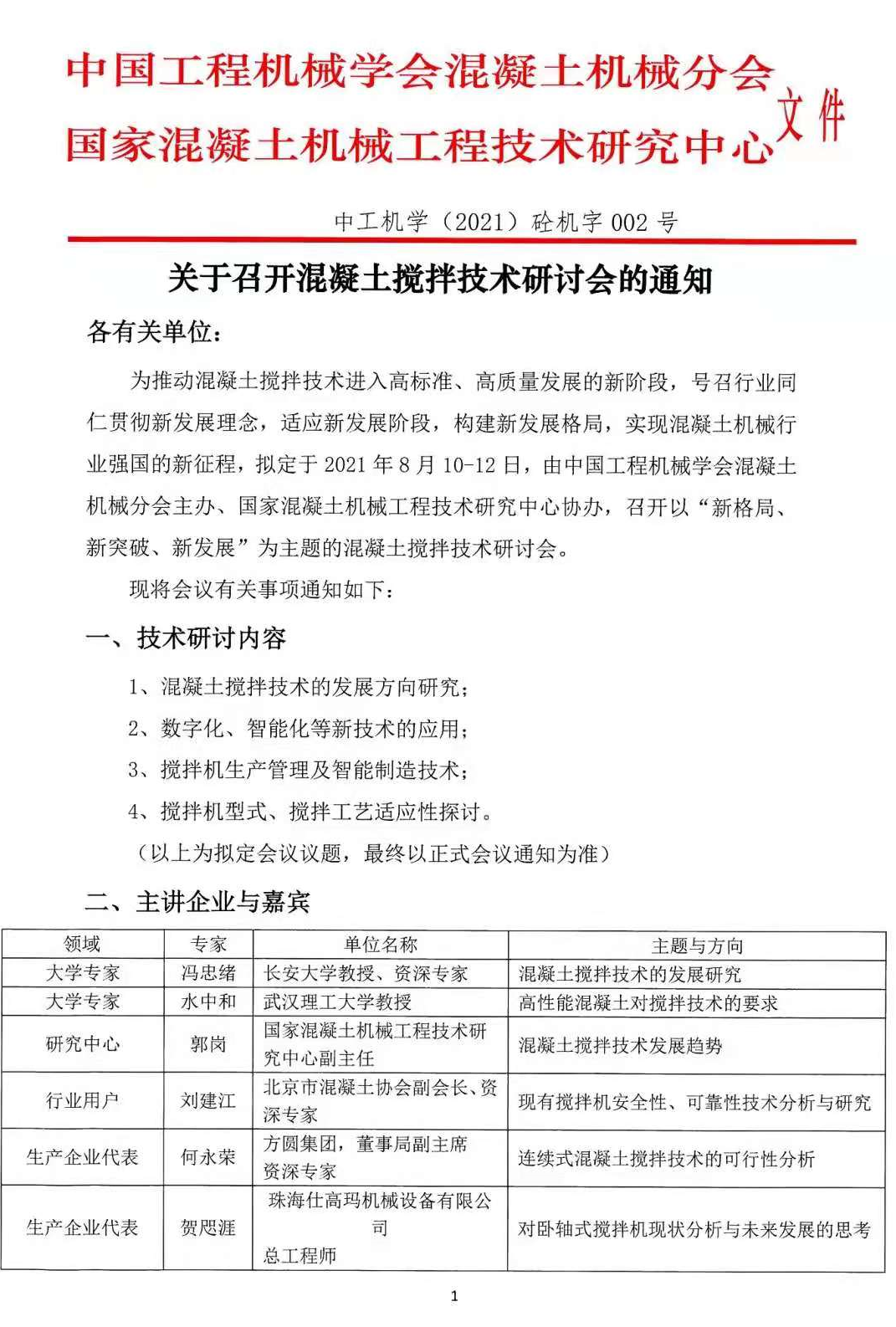 【通知】關(guān)于召開混凝土攪拌技術(shù)研討會的通知